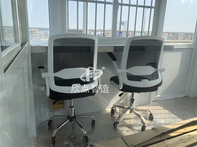 2、治安崗?fù)づ渲糜校汗ぷ髋_(tái)、插座、配電箱、開(kāi)關(guān)、LED燈等,根據(jù)要求還可以加配:監(jiān)控、空調(diào)、辦公椅、文件柜、LED顯示屏、警燈、警用裝備等。使用空間相對(duì)寬闊。崗?fù)?nèi)外墻板采用金屬環(huán)保板材,無(wú)毒無(wú)異味。工廠預(yù)制生產(chǎn)成品生產(chǎn)送貨上門(mén),真正做到拎包入住。